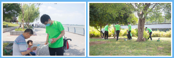 騎行活動結束后,參與員工隨即投入到環保知識公益宣傳與公園清潔活動中,他們用自身的專業知識和勤勞的雙手,以實際行動向公園的游客、市民普及環保知識,并向他們發出號召:美麗家園需要每個人參與,攜手行動,踐行環保綠色新方式!